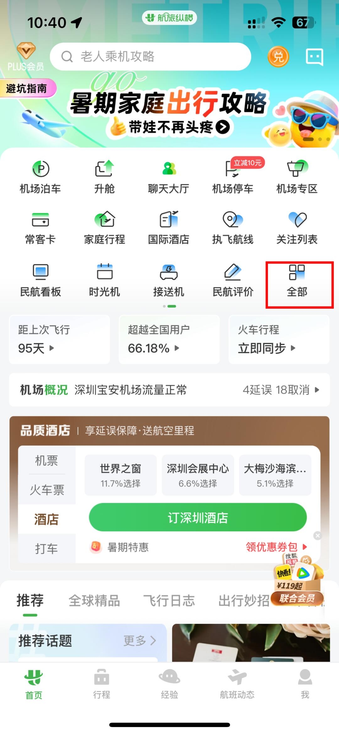 1、登录航旅纵横App官方最新版,点击首页后在红色框框位置往左滑动。