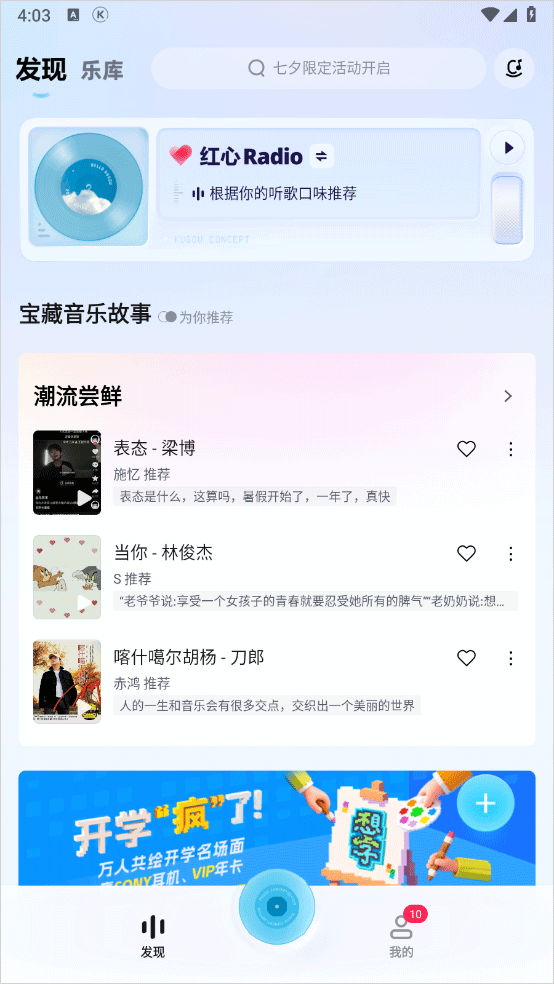 不止音乐,还有快乐!一起听/一起打卡/自习室/众乐房等创新听歌玩法,让你听歌社交两不误!