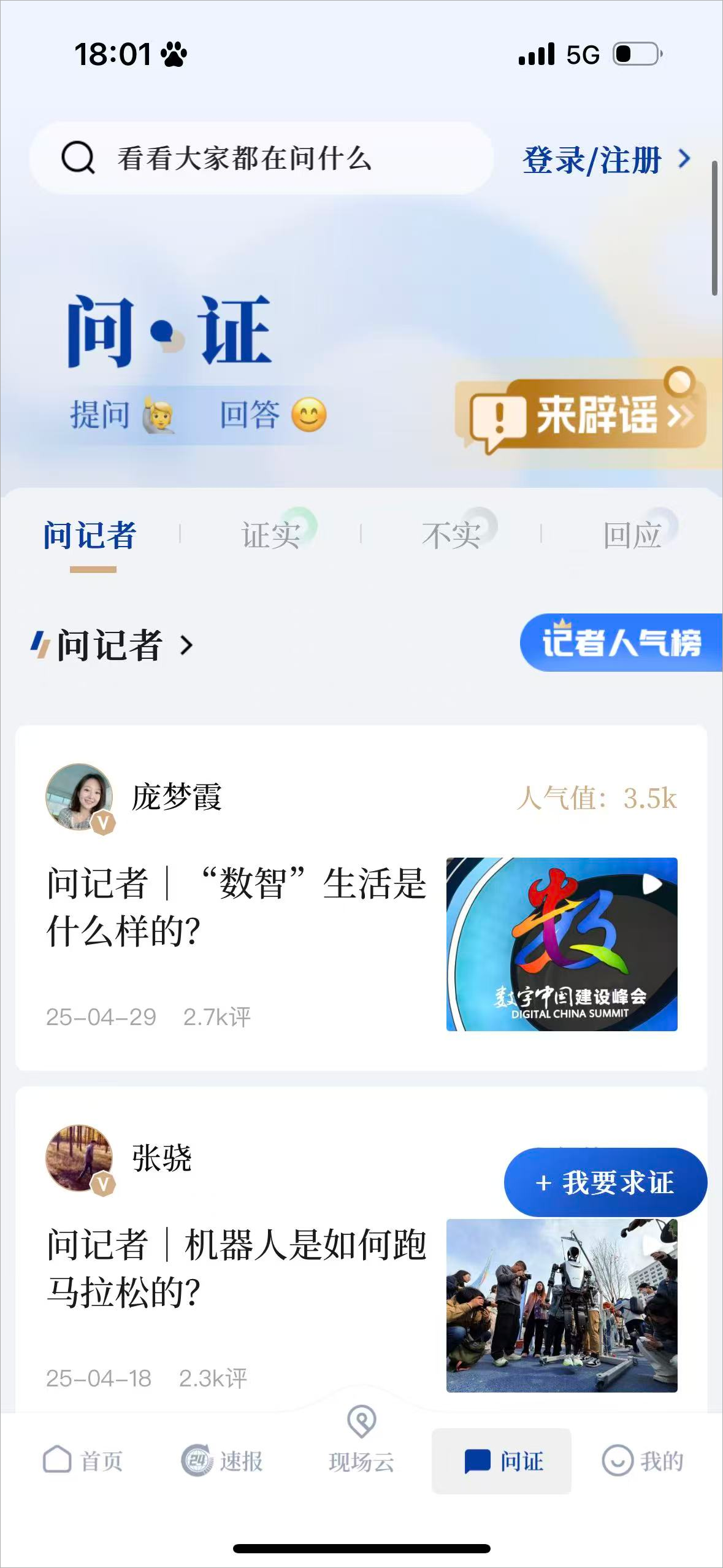 6、此外,新华社app内还有人气记者可以向他们提问,他们会用专业的职业学术来回答你的问题