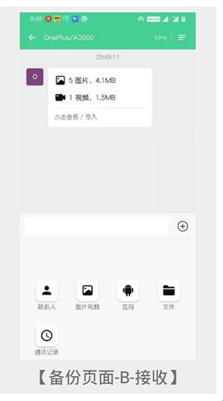 5、在A手机选择联系人、照片发送后,B会收到备份消息。