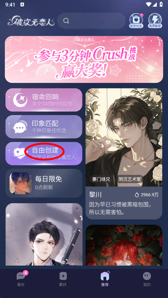 破次元恋人app是一款由网易官方推出的AI社交软件,用户可以通过它创作专属的聊天对象,还有着各种各样AI虚拟角色创建的通讯录,如:霸道总裁、疯批反派、绿茶男宠等上百位独具魅力的虚拟角色,每个角色都将带给用户完全不同的体验,让你能与之进行深度交流,而且该款软件中的虚拟角色都会24小时守护在你的身旁,感兴趣的快来体验错综复杂的情感纠葛吧!
