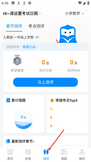 3、测评中心支持设定考试计划,通过章节测试与错题统计检测知识薄弱环节。