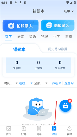 4、错题本支持拍照与手动录入,可按学科筛选并跟踪每道题目的复习进度。