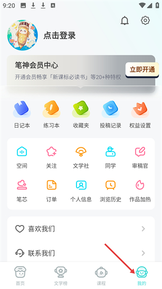 4、个人中心集成会员服务与写作工具,包含日记本及文学社等社交管理模块。