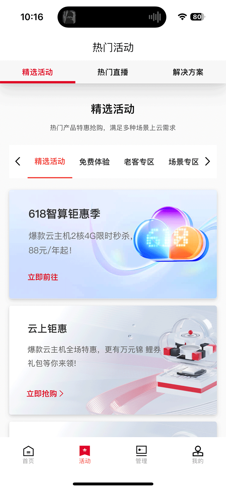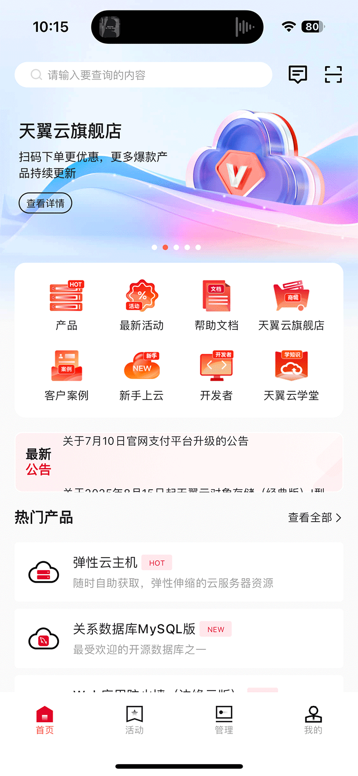 2、随时获取天翼云最新活动信息,涵盖免费试用,产品折扣等,实现降本增效;