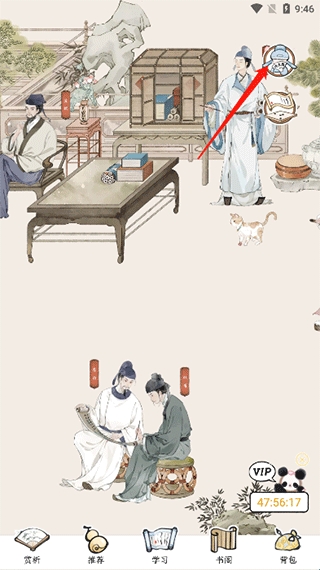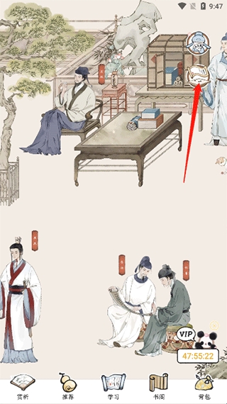 6、上方的古人图标可以查看大文豪们的朋友圈