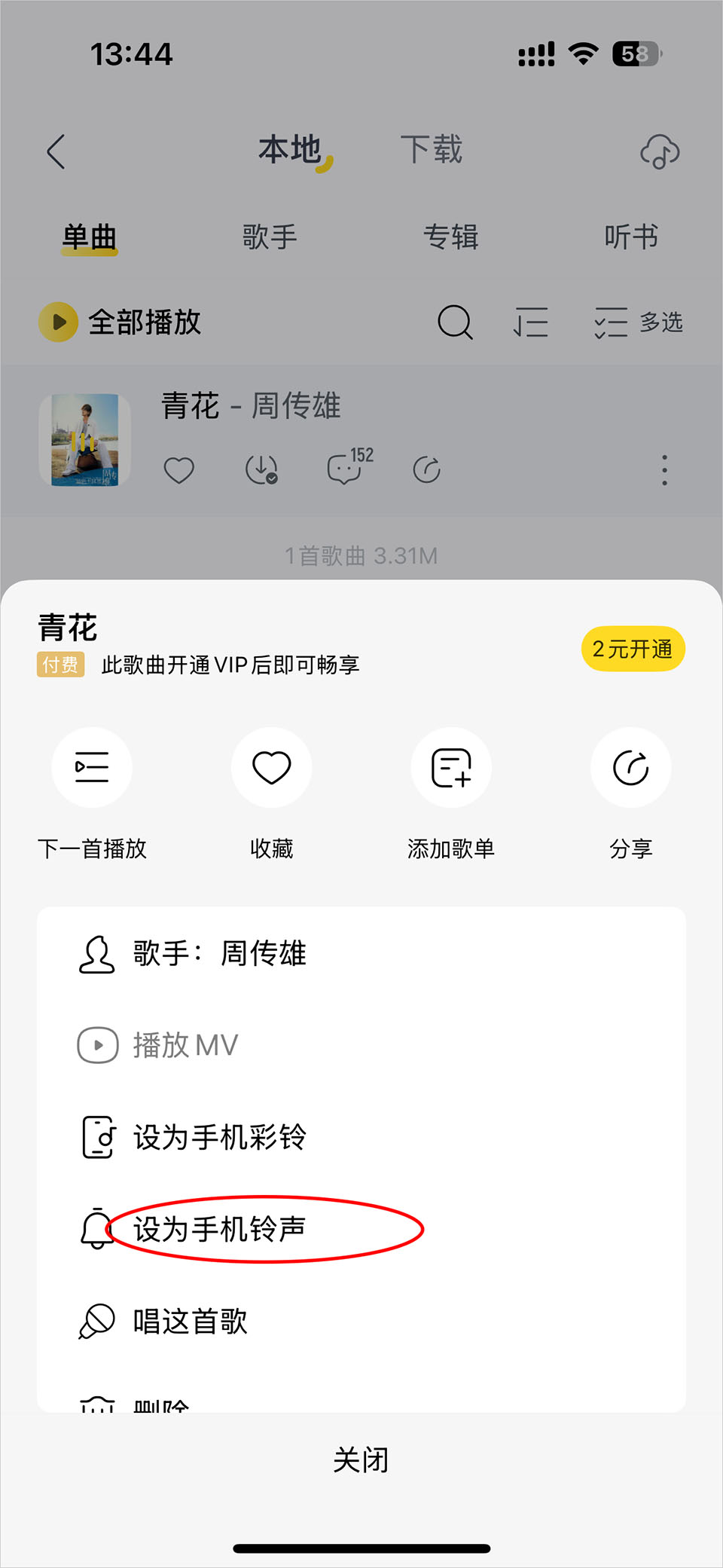 5、选择弹出窗口中的【设为手机铃声】即可。