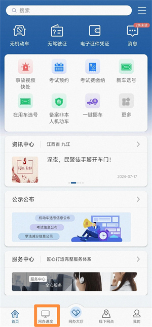 1、点击“网办进度”。