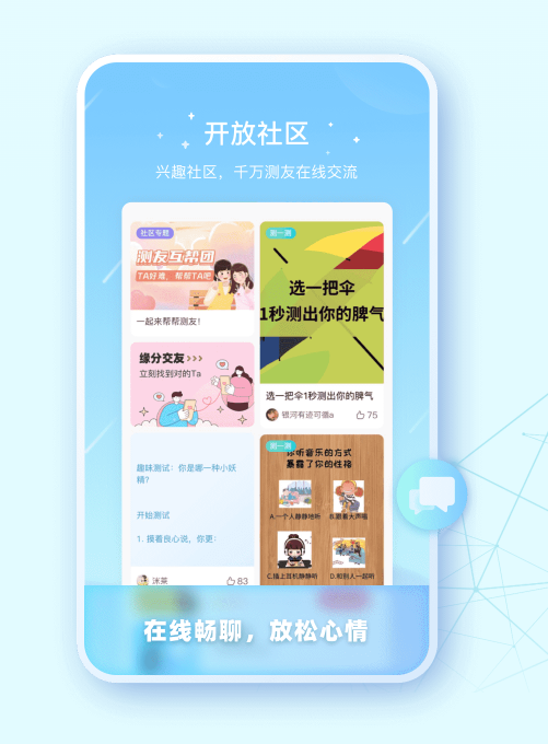 兴趣交友,精准匹配,和自己喜欢的测友一起交流分享;