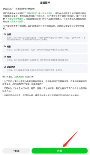1、首次启动应用时,系统会显示用户协议和隐私政策,阅读后点击同意按钮进入主界面。