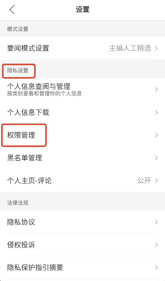 2、下滑找到隐私设置里的权限管理。