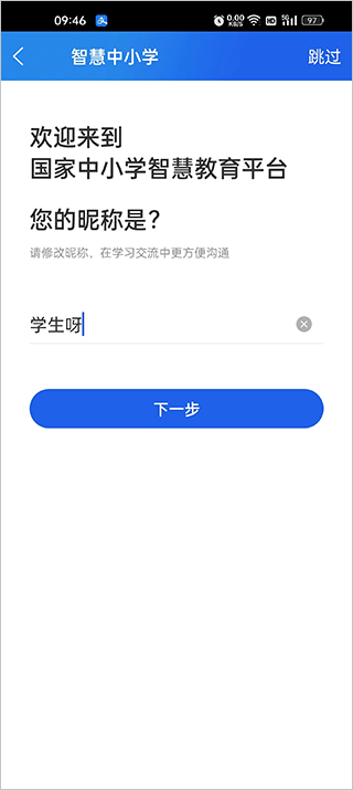 1、打开智慧中小学app,在登录界面点击选择“学生”身份;