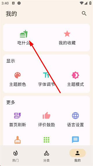 1、热门页面展示可乐鸡翅等菜品,底部可进入个人中心进行主题字体等设置。