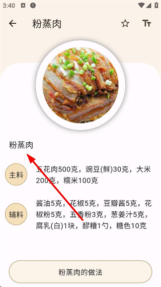3、菜品详情页提供完整的主辅料清单与精确用量,方便用户提前备齐食材。