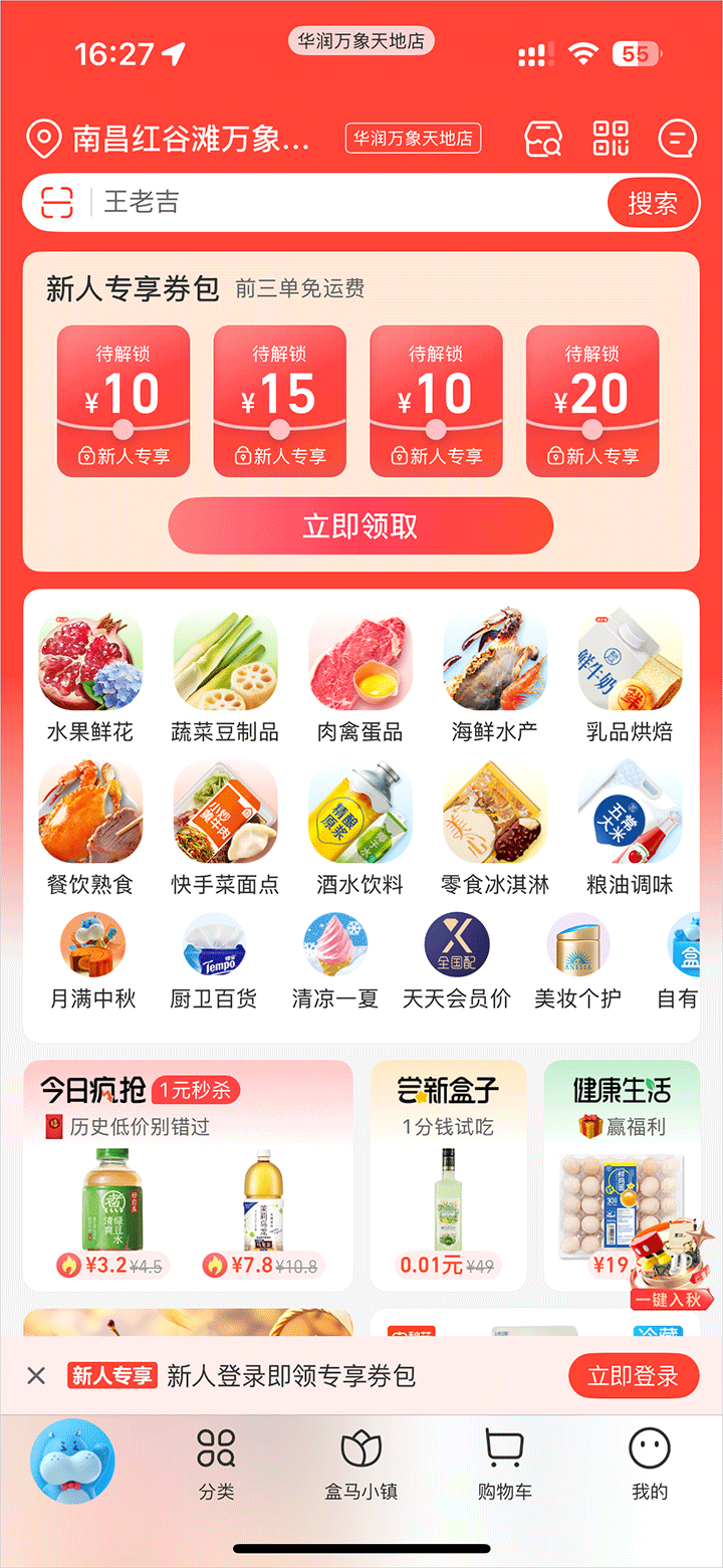 盒马鲜生app是一款由上海盒马网络科技有限公司推出的新零售软件,其汇聚了丰富的生鲜食品,如蔬菜、新鲜水果、熟食、烘焙等各类产品应有尽有任你挑选,并且保证品质、食材新鲜、产源直销等高效供应链节省中间成本,开创“不卖隔夜菜”的“盒马日日鲜”等系列心智商品,为用户提供最快30分钟极速送达的智能购物体验,省去外出买菜、翘首等外卖的麻烦,而且价格十分实惠,无需配送费,让用户体验来自全球的美味,享受健康的生活方式。