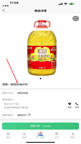 4、商品详情页展示完整产品信息与提货方式,实现生活类商品的线上服务流程。