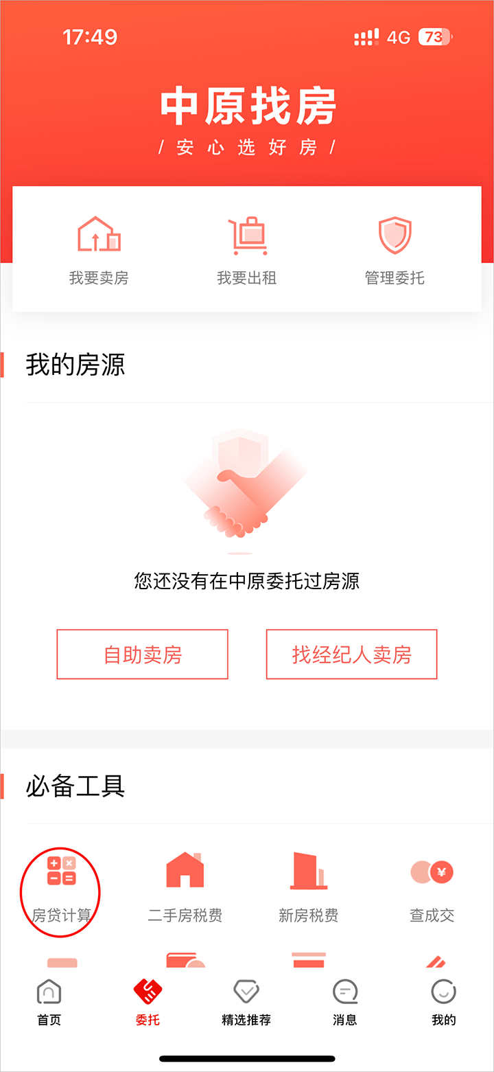 2、进入委托页面点击房贷计算器