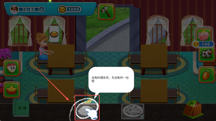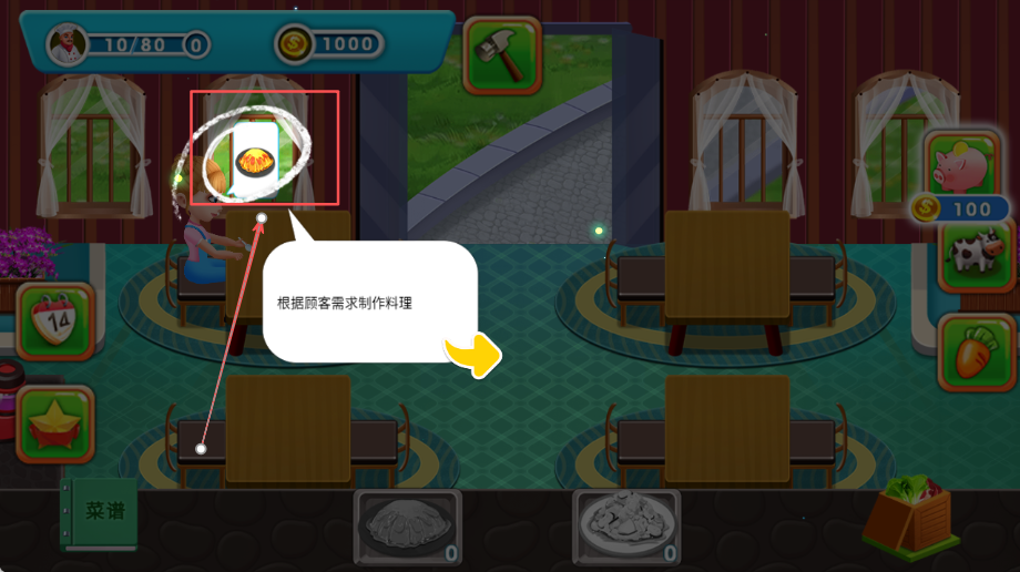 3、根据顾客的具体需求点击相应图标开始制作料理,分析订单要求并准备所需食材和厨具设备。