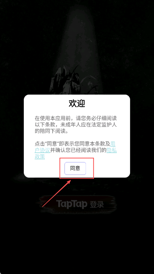 1、首先点击同意按钮确认用户协议和隐私政策条款内容,完成游戏初始设置流程,为后续游戏体验做好充分准备,确保顺利进入游戏主界面开始解谜之旅。