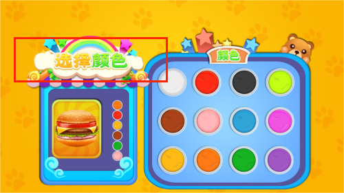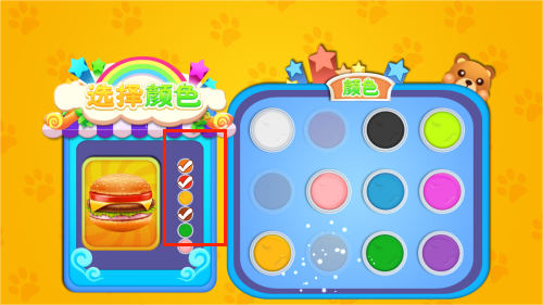 3、屏幕右侧设有调色板区域,其中包含多种色彩样本,需根据提示为汉堡模型选取正确的颜色。
