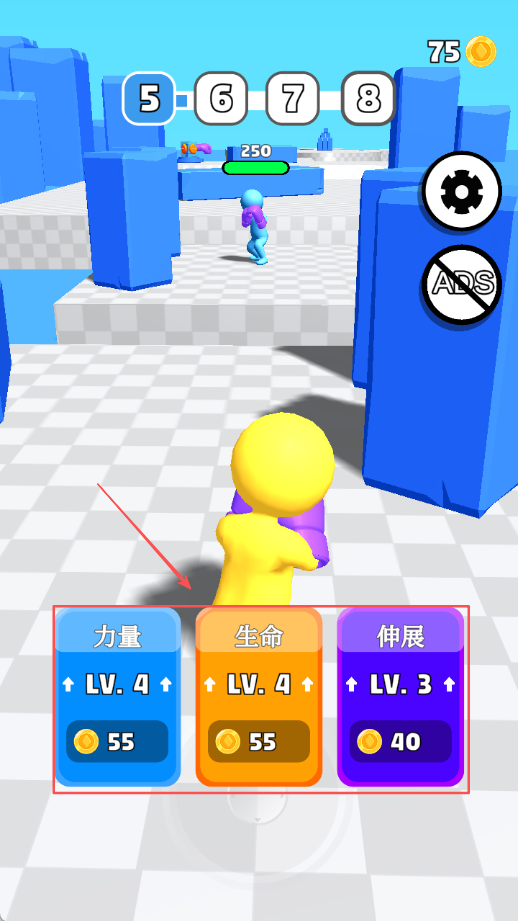 1、核心玩法是控制橡皮人伸缩手臂进行攻击,需要预判距离和轨迹准确命中目标,掌握不同攻击距离的技巧,提高作战效率。