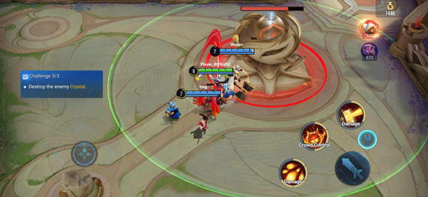 4、最后,玩家操控刚刚选择的角色开始新手指引,当成功推倒敌方水晶基地即可取胜通过新手教程。