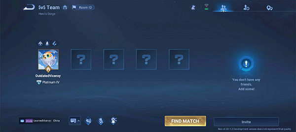 2、选择好模式后,可以点击右下角“find match”直接匹配路人,也可以查看好友列表邀请好友一起进入匹配