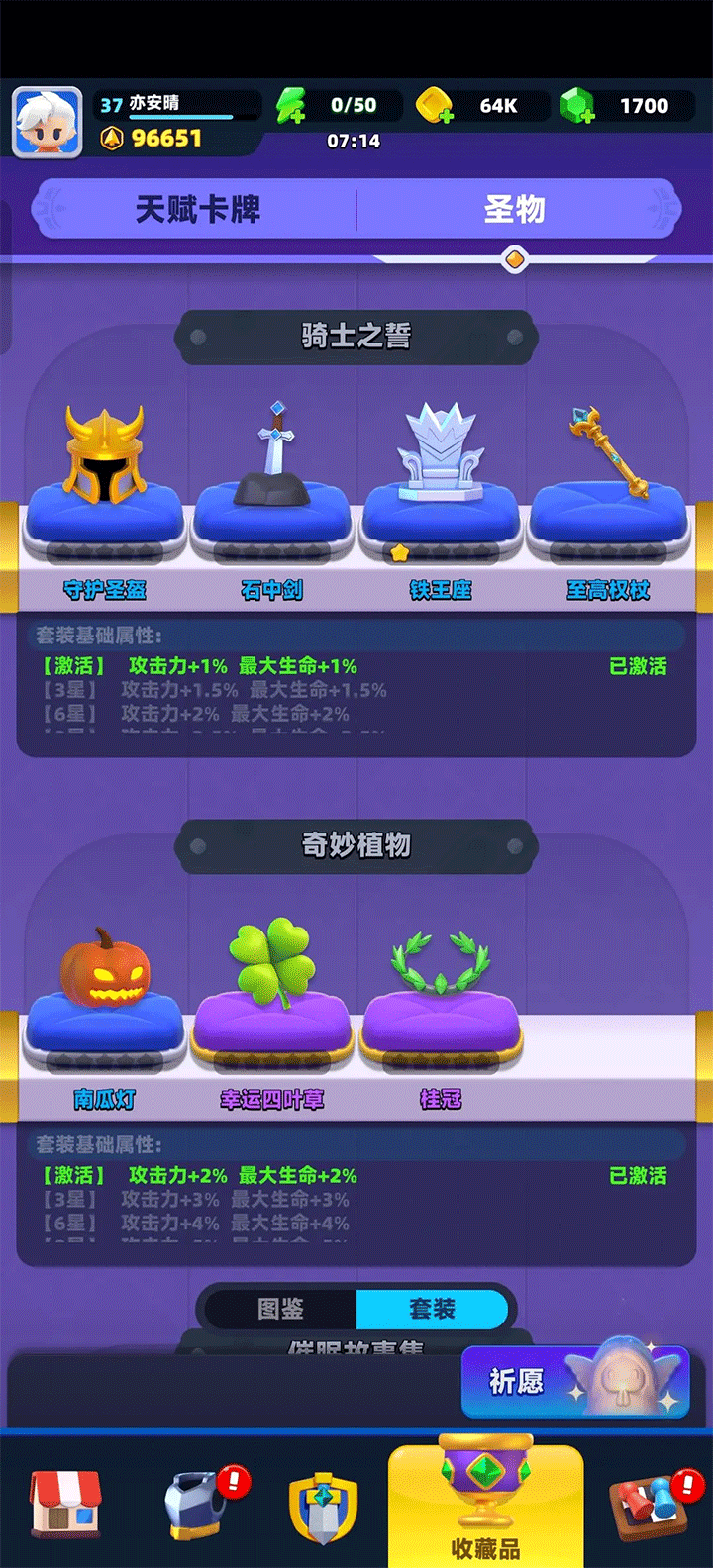 圣物就是纯提供加成和特殊属性的,同时集齐特定宝物也有套装加成,