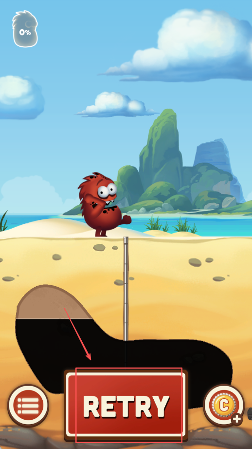 2、点击重试按钮重新开始当前关卡挑战任务分析失败原因,当前关卡进度为百分之十需要重新规划策略方法提高成功率。