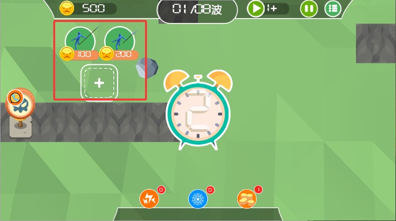 4、指挥士兵与防御设施协同作战,成功抵挡画面左上角显示的所有进攻波次后即可通关,并获得建筑升级材料奖励。
