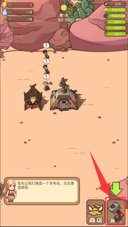 2、点击屏幕右下角的建造菜单展开设施列表,根据当前资源储备与生存需求,优先选择建造必备的生存类基础建筑。