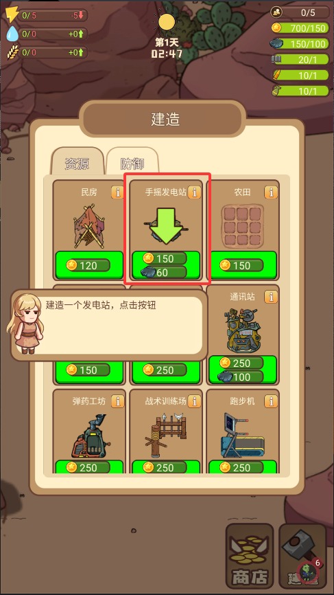 3、在能源分类中找到发电站图标并点击确认建造,将其放置在营地中心区域以确保供电范围覆盖主要生产设施与防御建筑。