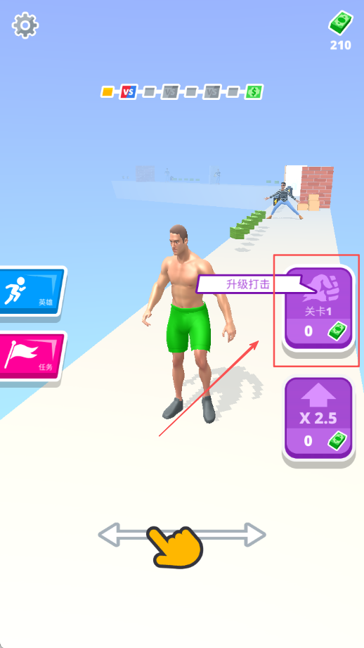 3、点击攻击升级选项增强角色基础攻击力数值属性,以便更轻松突破各类障碍物和阻挡目标顺利前进。
