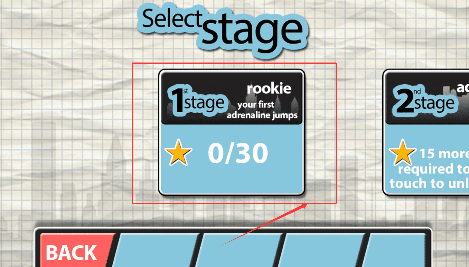 1、游戏开始后首先点击红色jump按钮进入关卡选择界面,选择想要挑战的关卡后进入游戏场景。