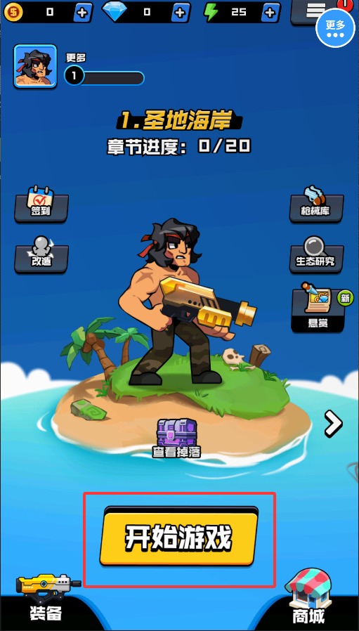 2、在角色准备界面点击开始冒险按钮,系统会匹配适合当前等级的荒岛地图,确认载入完成后立即进入作战区域。