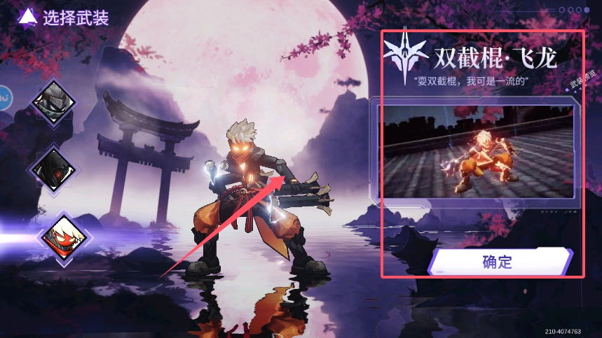 3、继续浏览"双截棍·飞龙"武装的相关信息,分析其战斗风格与适用场景。确认选择后完成装备流程,至此已完成多种武装的基础配置工作。