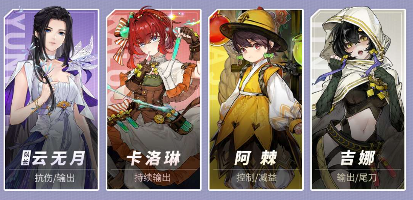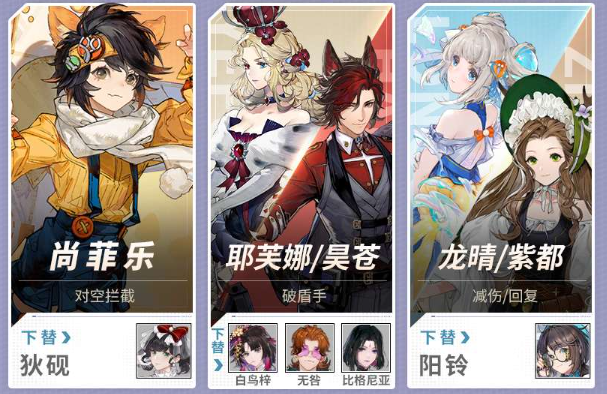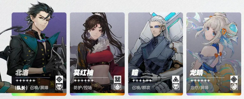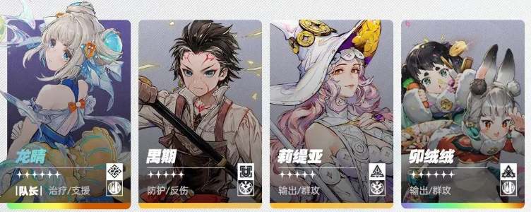 队长推荐用龙晴(队长技能屏障·水凑激励)龙晴开3次技能凑满激励后可切换阳玲通过雷与霜打电解反应,通过降低敌人攻击来减少压力。