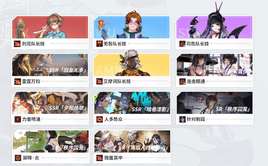 配队选择只推荐首发四人,替补根据自己牌库选择。(可优先多带一个T和奶)