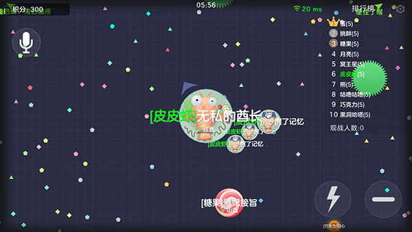 2、策略性对战,玩家需要通过吞噬、分裂、碰撞等操作,不断提升自己的体积,目标是成为战场上的最大球体。