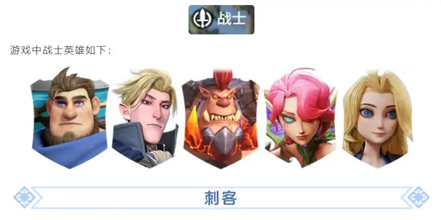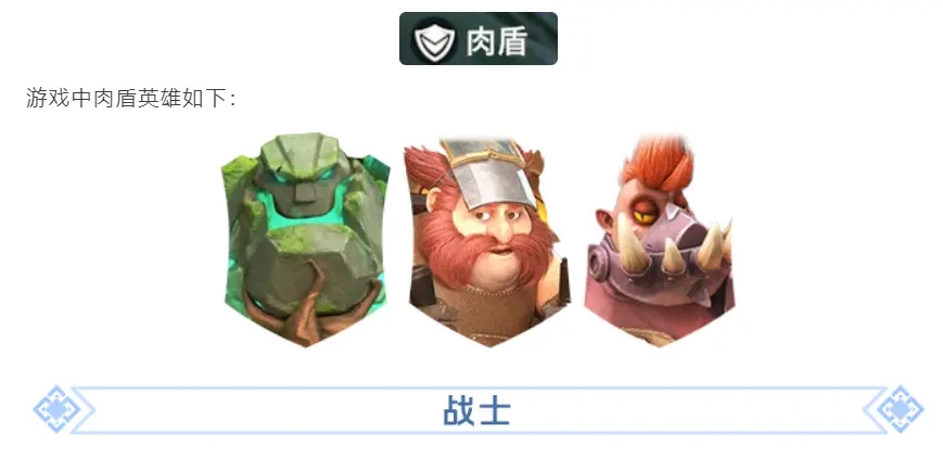 2、战士:近战输出英雄,兼具生存和输出能力,擅长正面战斗,其坦度不如正常肉盾,但能制造更多输出。通常作为前排或者中排,靠前制造输出同时吸收伤害。