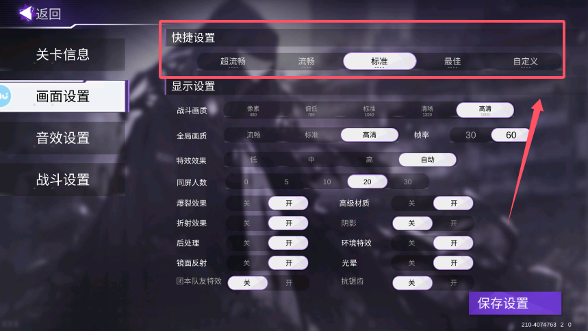 2、通过画面设置优化视觉体验,开启60帧模式确保动作流畅,选择高清画质提升细节表现。合理的画面配置有助于更好地观察战场动态与敌人行为。