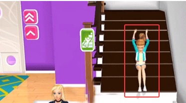 4、芭比会开心地坐上滑梯,伴随着欢快音效从二楼滑到客厅,重复点击可连续玩耍。