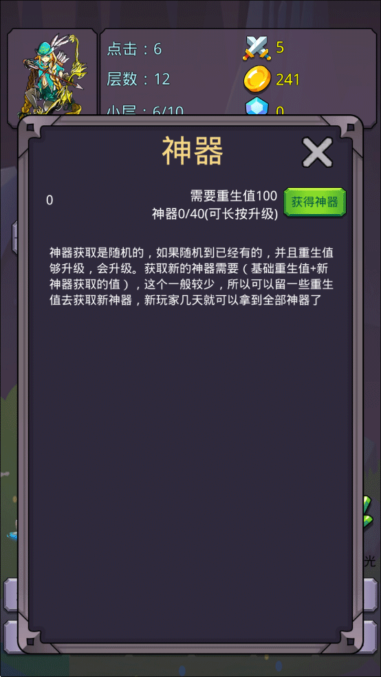 脑力风暴: 这不仅仅是放置!在海量【神器】的搭配选择中,充分发挥你的策略思维。精心规划每一次【重生】(例如,初期如何分配5次重生机会),与其他勇者一较高下,看谁能更快登顶战力巅峰!