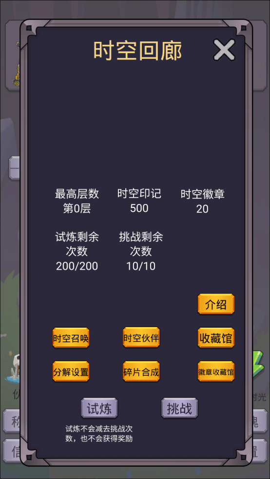 新人先去时空回廊伙伴十连,拿一个成长值最高的伙伴升几级打挑战,每天推到新层后可以去收藏馆刷新属性,前期能领到很高的数值。在成就里有个205成长值的伙伴,新手期可以把拿到这个伙伴为目标。中期等星魂行动力上百,要去推传送点升阶,中期的数值爆炸主要靠星魂提升的。当时空和星魂都卡关时就到后期了,提升靠神器,称号和宠物,只能慢慢沉淀了。