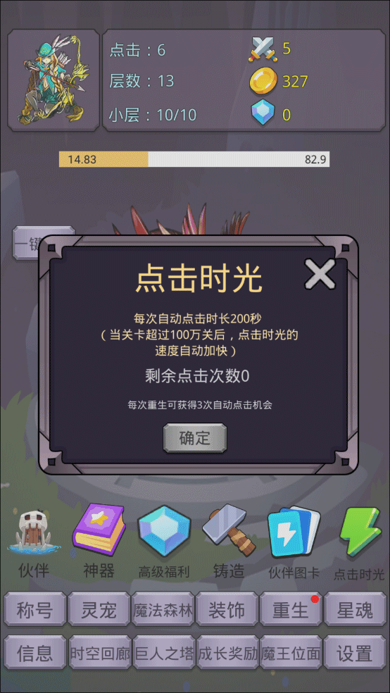 点击神器,推荐先升级,加速前期推关。