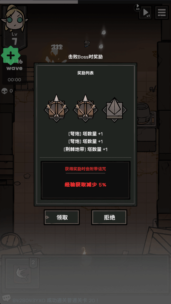 5、死掉的怪物会掉落经验值,经验值攒够之后可以选择增加炮塔数量或进行升级
