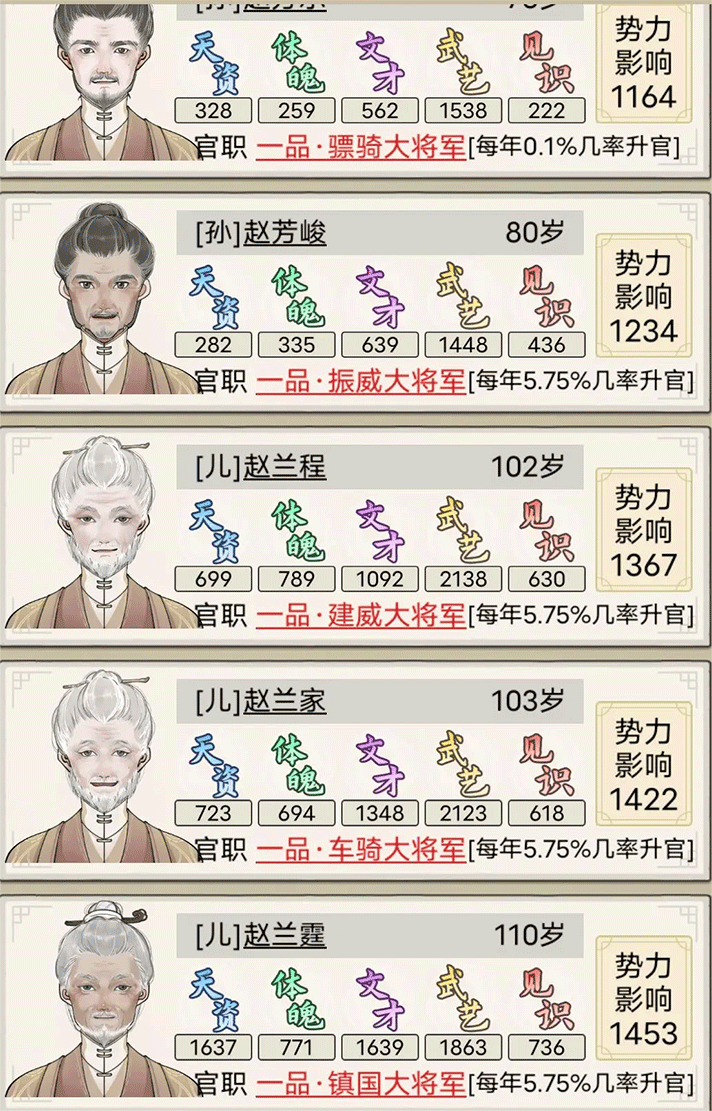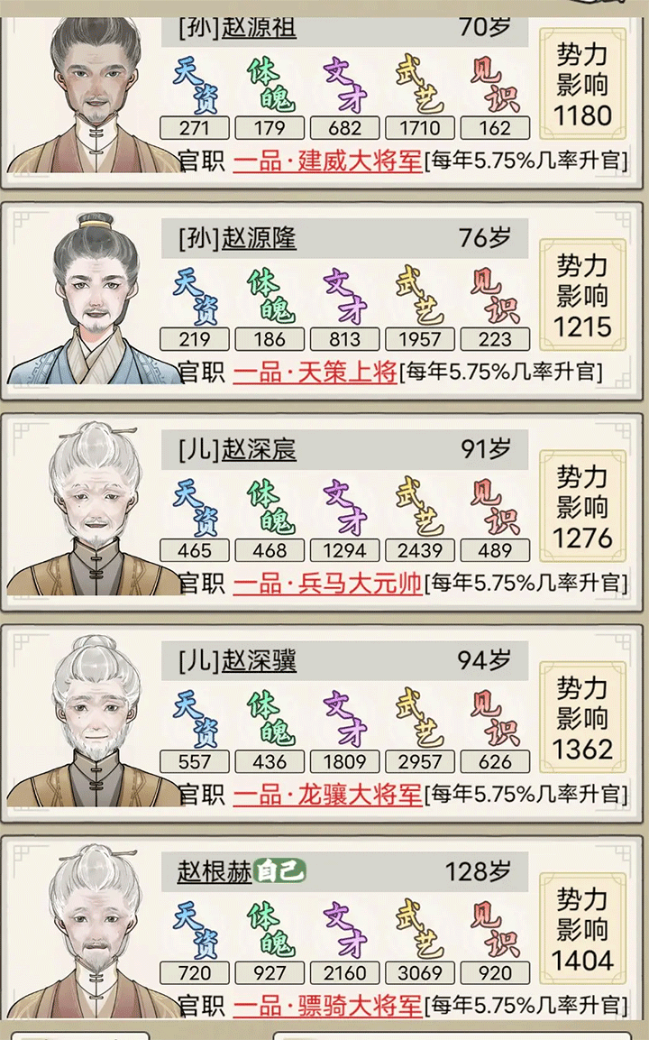 3、多样化的职业选择:家族成员可以选择成为文人、武将、商人等多种职业,每种职业都有独特的技能和成长路径。