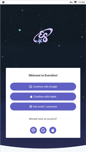 1、打开Everskies永远的天空中文版: 虚拟装扮,游戏需加速器启动,首先点击“@ Use email”注册账号;