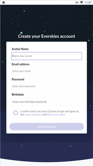 3、接着取一个用户昵称,填写账号邮箱、密码、以及生日等,并同意用户协议注册即可;