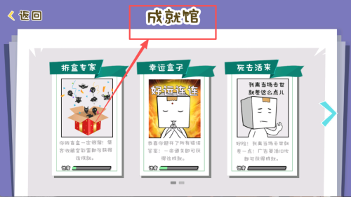 4、退出游戏主流程后,找到“成就馆”入口进入,可查看“拆盒专家”等各类成就的获取条件。